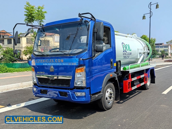 The HOWO 116HP 5CBM Vacuum Tank Sewage Suction Truck is a compact and efficient solution for urban sanitation and septic tank cleaning. Built on a reliable HOWO 4x2 chassis with left-hand drive and powered by a 116HP YN4102QBZL diesel engine, it offers excellent mobility and durability. The truck features a 5,000-liter sewage tank made of 5mm carbon steel, ensuring strength and long service life.Equipped with a SK-9 water circulation vacuum pump, it delivers strong suction power for fast and effective sludge removal. Ideal for municipal sewer maintenance, this vacuum truck combines robust construction, reliable performance, and ease of operation, making it a practical choice for small to medium-scale waste collection tasks.