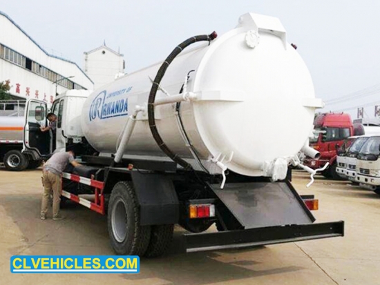 2, The suction truck is equipped with a level inspection window and a self-flowing port, a hand washing device, an anti-overflow valve, a suction pipe of 8 meters, a hydraulic opening of the rear door, and a SK-15 water circulation vacuum pump. The suction truck has a large suction stroke and suction. Besides, the tank has a lifting function.