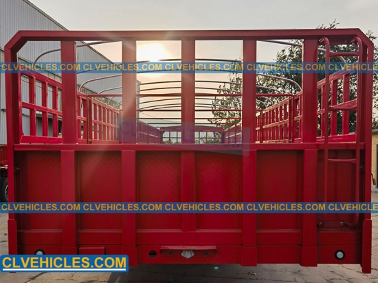 The stake bed semi trailer generally has a flat bled enclosed by fence-like exterior. It is widely used to transport animals, steel coils, coals, and other light puffy cargoes.
